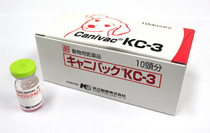 ケンネルコフの主要な病原体である3種に対する安全性の高いワクチンで3週齢以上の犬に2〜3週間隔で2回投与しています。